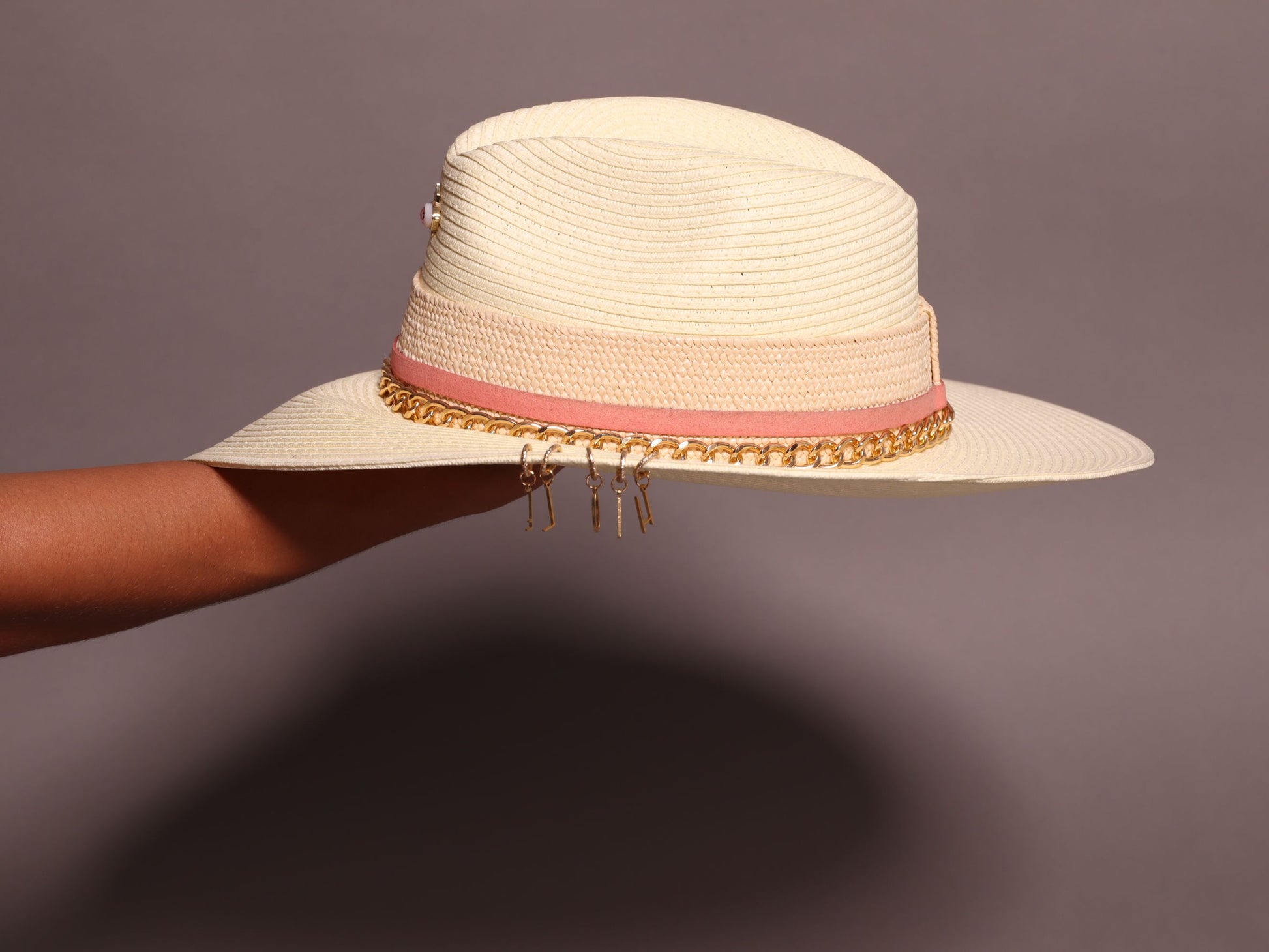 The Beth hat is made of palm, a natural and cool material that makes it perfect for warm weather. Steel accessories are designed to complement the design of the hat and add a touch of modernity and sophistication.