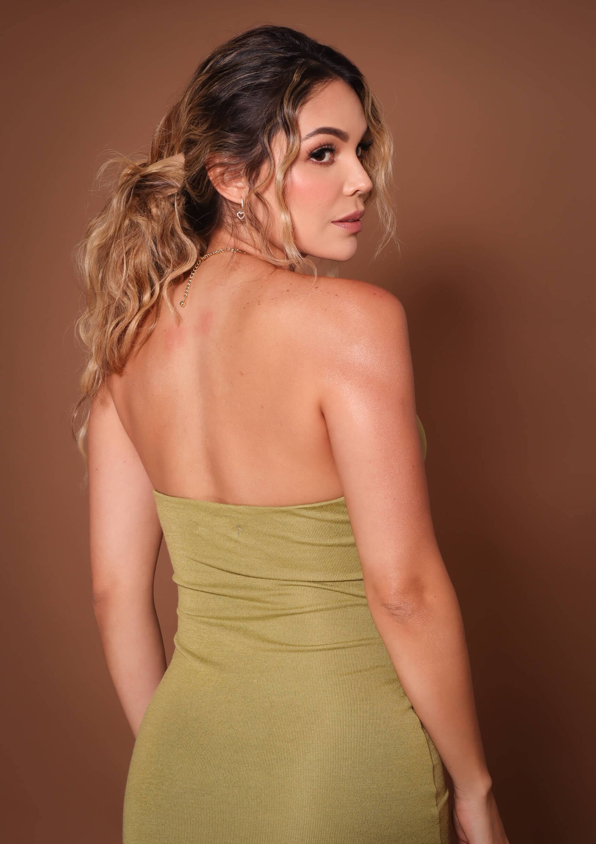 We present our soft fabric mini dress fitted to the body with a necklace, the Baoli.