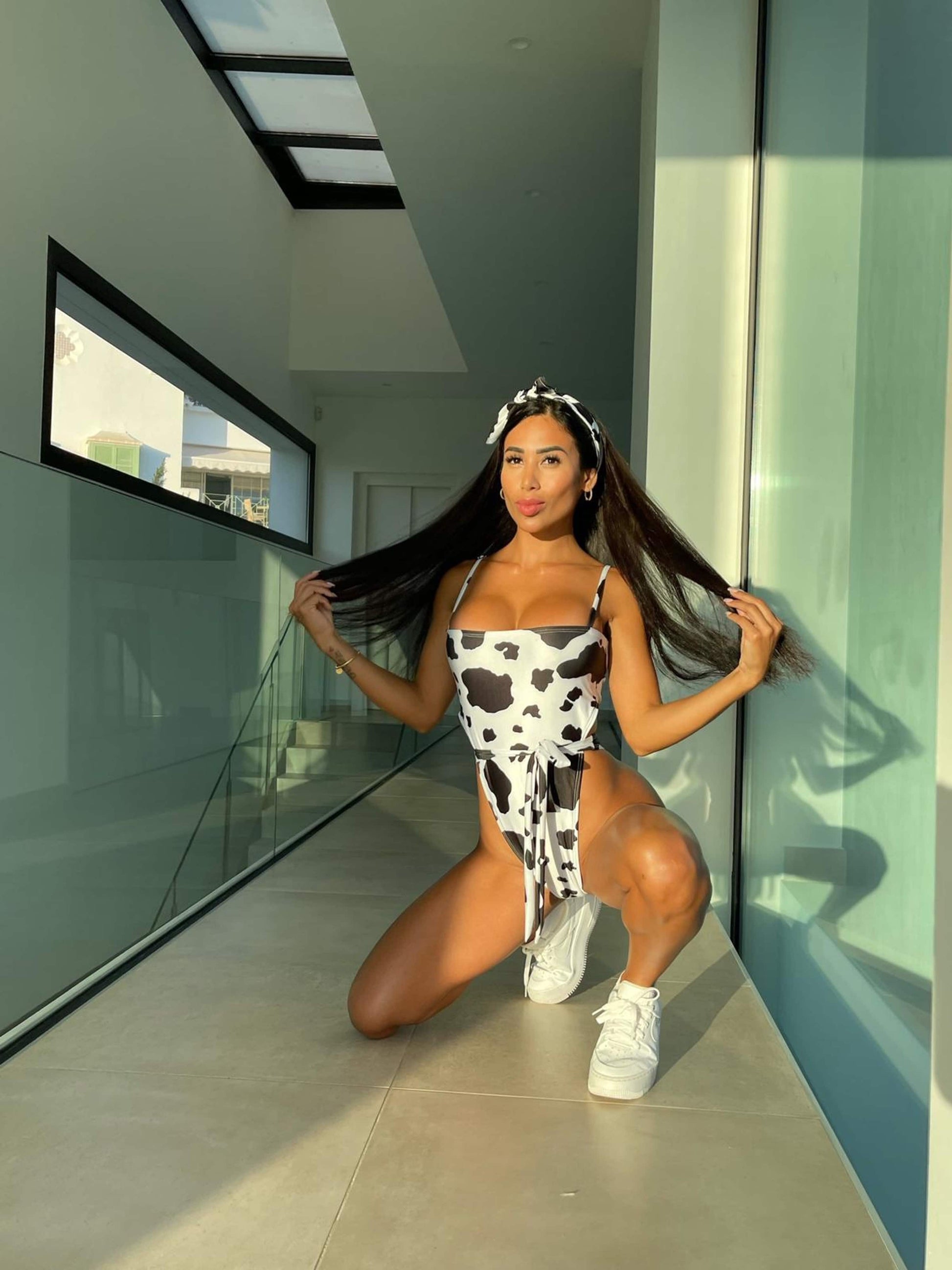 Beautiful one-piece high-cut one-piece bikini with cow print. This jumpsuit is incredible because of the high cut at the bottom that makes your legs look long and show off your whole figure. It has a bow around the waist to give visual emphasis to this part of your body. The top of this bikini is bandeau style with spaghetti straps for added support.